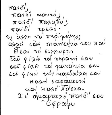 Και η δική μας γενιά αξιώθηκε να γνωρίσει τα εύοσμα άνθη του Αθωνικού Μοναχισμού, τον Γέροντα Παίσιο και τον παπα-Εφραίμ τον Κατουνακιώτη, πού μας καλούν να ακολουθήσουμε την ζωή τους.