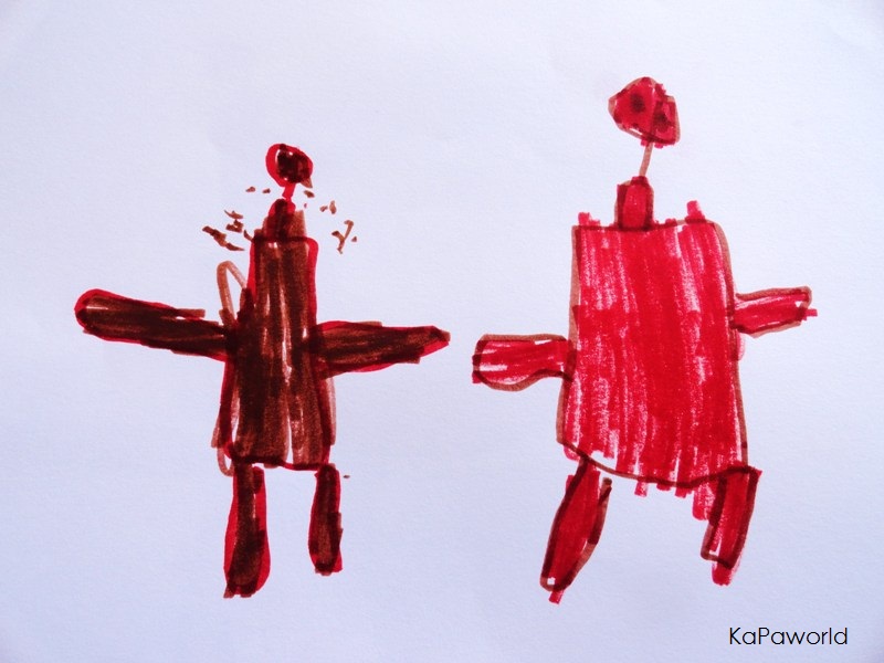 Παίζουμε και χτυπάμε τα παιχνίδια μας στο πάτωμα και γελάμε. Η μαμά και ο μπαμπάς μας λένε να σταματήσουμε. Δεν κάνουμε τίποτα μόνο γελάμε. Μας φωνάζουν να σταματήσουμε να κάνουμε βλακείες και να κάνουμε επιτέλους ησυχία…γελάμε κρυφά και μετά εκείνοι θυμώνουν γιατί τους κοροϊδεύουμε. Μας έπιασαν δυνατά από το χέρι και μας έκλεισαν στα δωμάτια μας. Μόνους…